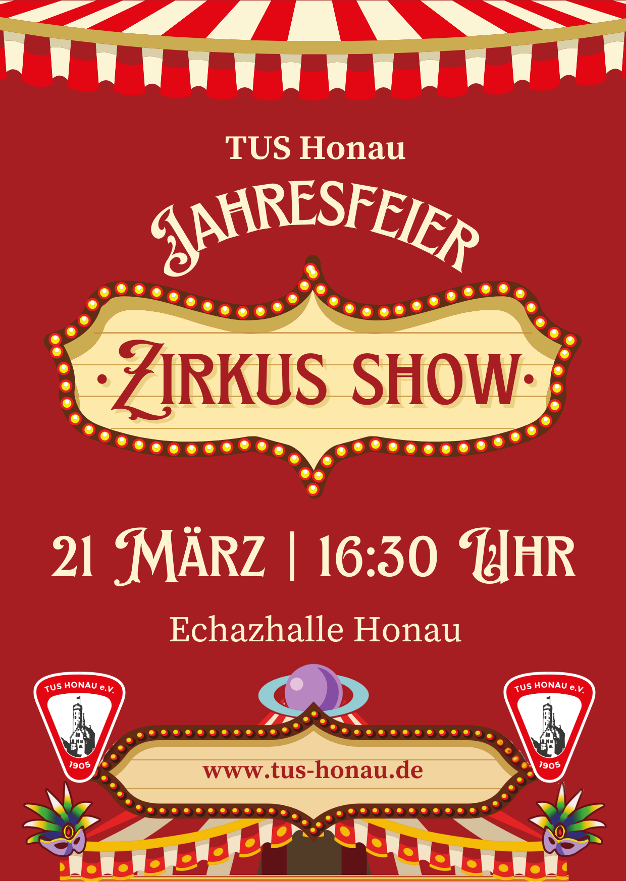 Kommt vorbei, bringt Familie und Freunde mit und erlebt eine unvergessliche Zirkus-Jahresfeier!